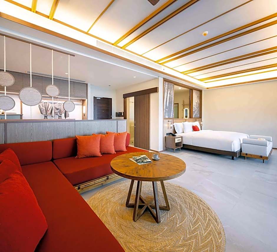 Deluxe Pool Access Sea View rooms give you direct access to our pool area and feature a full range of essential amenities for a comfortable stay. A furnished outdoor terrace offers a cozy place to relax, or lounge around on your plush sofa before rejuvenating underneath a rain shower.